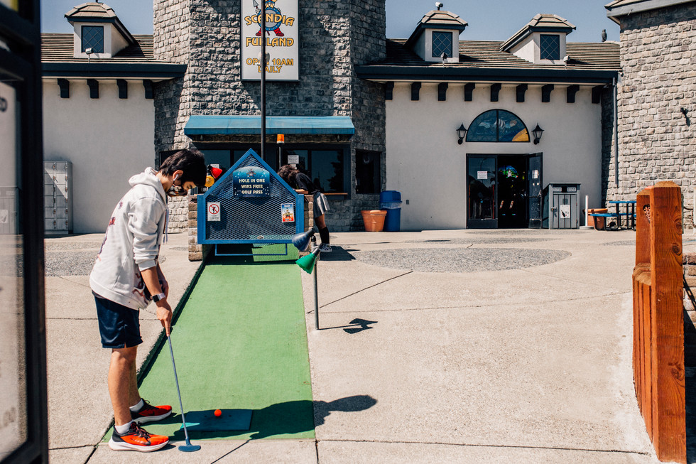 Photographing older children can be tricky, as they tend to want to be on their phones and into doing their own thing, rather than spending time with their parents. That is why when the mom suggested doing a few hours of mini golf I jumped at the chance. While there were still "screens" around, it was a great activity for them to do together and to have the teens interact with one another.